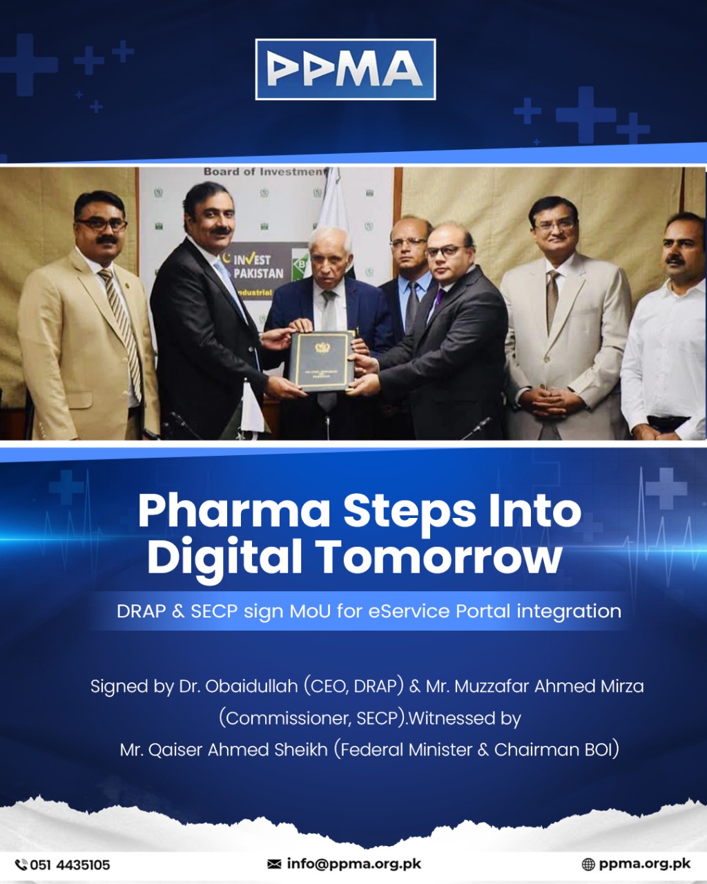 DRAP & SECP sign MoU for eService Portal integration. Signed by Dr. Obaidullah (CEO, DRAP) & Mr. Muzzafar Ahmed Mirza