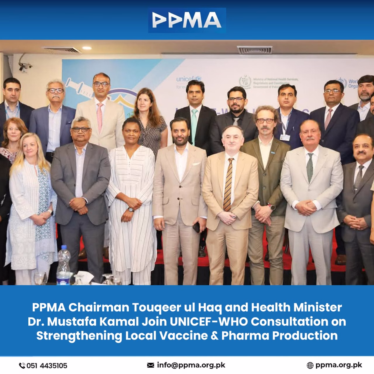 PPMA Chairman Touqeer ul Haq and Health Minister Dr. Mustafa Kamal participated in the UNICEF-WHO industry consultation focused on strengthening