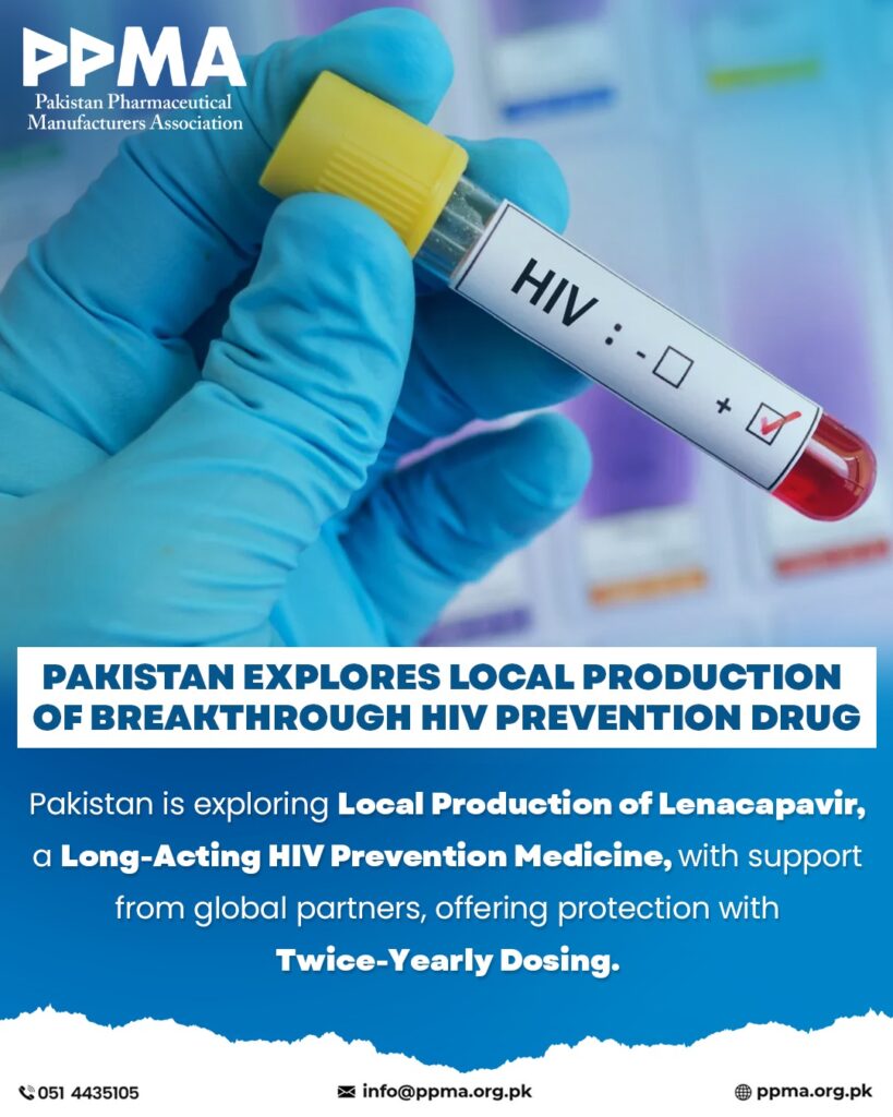 The Pakistan Pharmaceutical Manufacturers Association (PPMA) is proud to announce that Pakistan is exploring the local production of Lenacapavir. This breakthrough, long-acting HIV prevention medicine requires only twice-yearly dosing, offering a revolutionary approach to healthcare and protection.Select 85 more words to run Humanizer.
