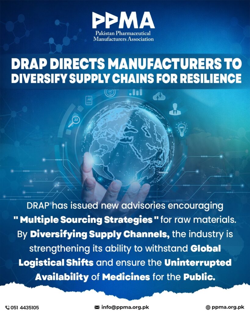 The Drug Regulatory Authority of Pakistan (DRAP) has issued new advisories urging pharmaceutical manufacturers to adopt Multiple Sourcing Strategies for raw materials. By diversifying our supply chains, the industry is building the resilience needed to navigate global logistical challenges and ensure that essential medicines remain available to the public without interruption.